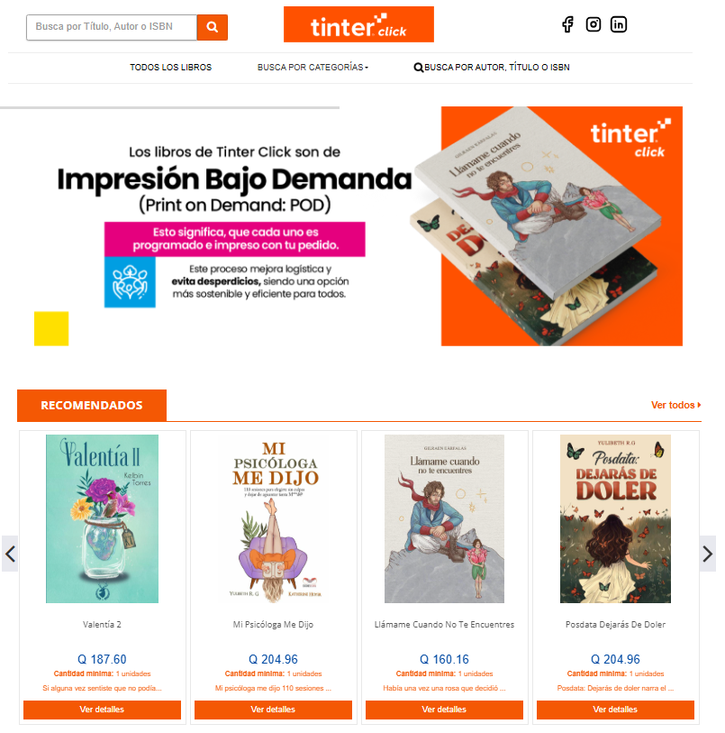 Tinter, una empresa del Grupo Prensa Libre, lanzó recientemente la plataforma Tinter Click, una tienda en línea de libros impresos bajo demanda, con más de 25 mil títulos disponibles para los lectores.