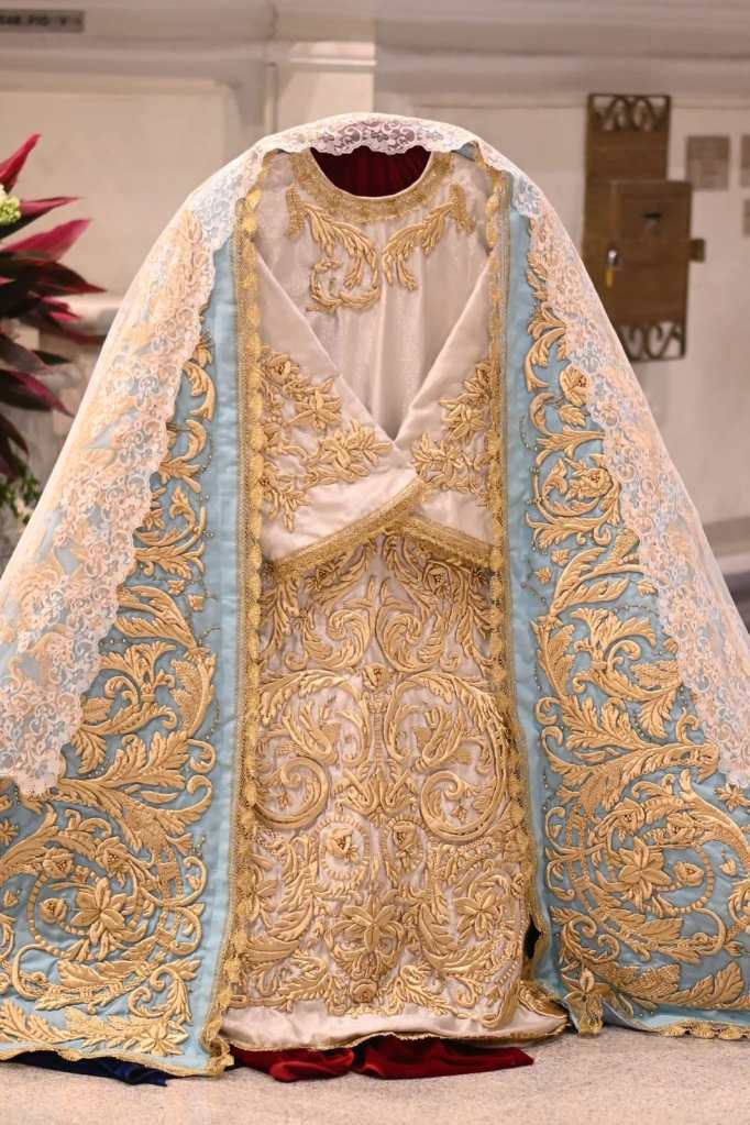 Para conmemorar los 75 aniversario, la Virgen María estrenará un ajuar confeccionado especialmente para esta ocasión. El ajuar esta conexionado por artesanos guatemaltecos y con elementos originarios de España.
