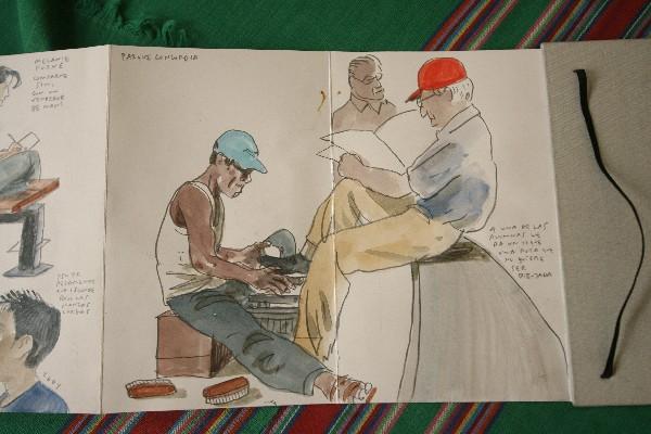 “El artista se siente con mucha libertad cuando trabaja en la calle con cuadernos. Es un material humilde y poco pretencioso, y eso ayuda a crear. Pierdes el miedo a la hora de salir a espacios públicos, ya que no llamas la atención de los transeúntes”, comenta el ilustrador, quien busca que los antiguos cuadernos de viaje —que eran muy usados antes de que se hicieran populares las cámaras fotográficas de bolsillo— sean fieles compañeros de los dibujantes.