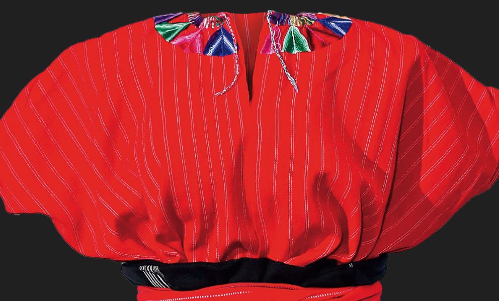 En el huipil del traje de indumentaria maya de Santa Cruz La Laguna, Sololá, que forma parte de la serie "Tradición textil maya", que sale publicada en Revista D, están representados los volcanes que rodean el Lago de Atitlán.