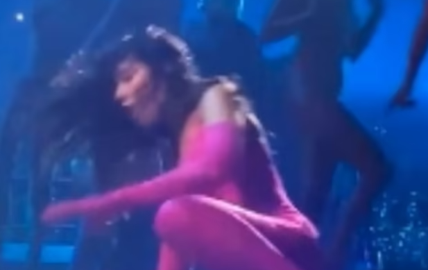 Uno de los miembros de su equipo artístico la ayudó a levantarse casi de inmediato y el concierto continúo, pese al susto.