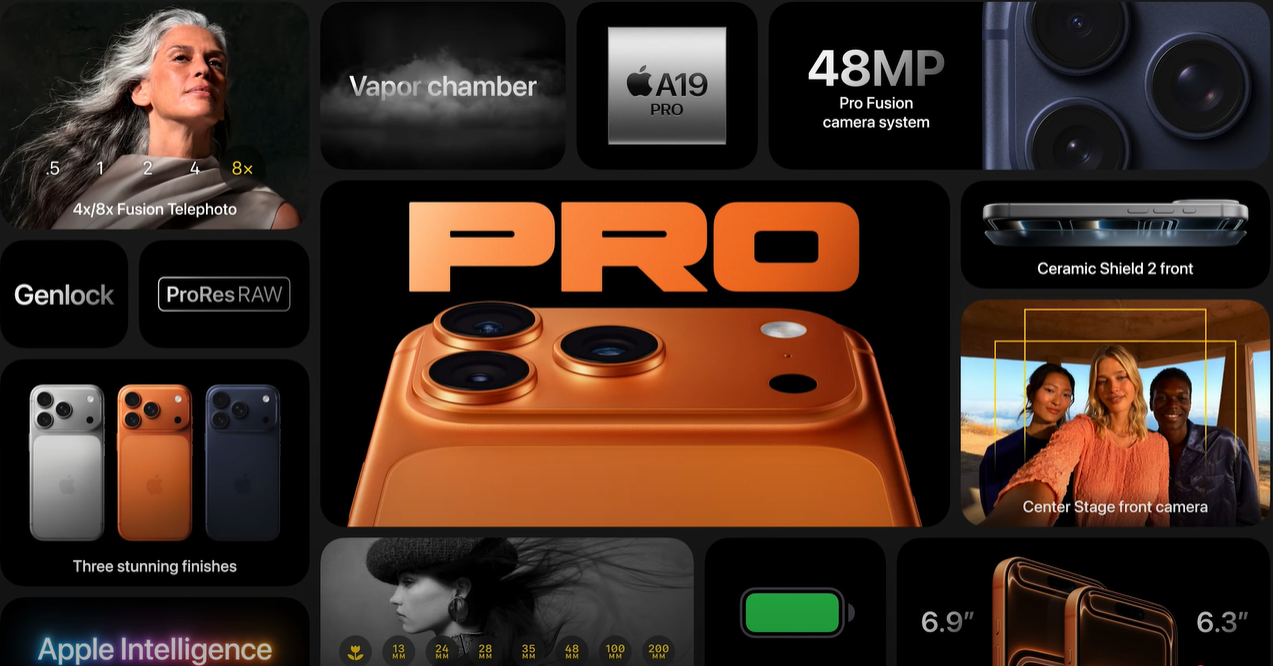 - iPhone 17 Pro: Construido para mayor durabilidad, con una batería más grande y mayor memoria.