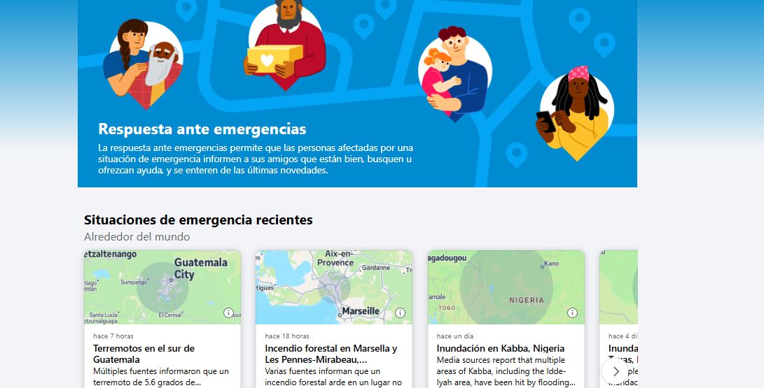 Facebook posee una opción llamada Safety Check (Comprobación de seguridad) que permite generar una notificación especial para a los amigos del usuario. Gracias a este recurso el usuario puede reportar que se encuentra bien.